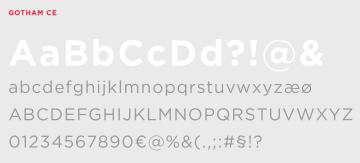 Jako hlavní písmo se používá rodina písma Gotham ve všech jeho tloušťkách (řezech).